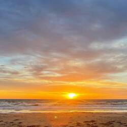 Er wollte heute Morgen zum ersten Mal den Sonnenaufgang beobachten.