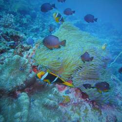 Der letzte Tauchgang auf Fiji war zugleich der eindrücklichste! Ca zehn Haie, der grösste ca 2 Meter, Turtles und am Schluss auf der Rückfahrt im Boot eine hochgiftige Wasserschlange!
