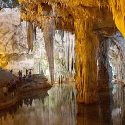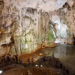 Wir haben heute nach dem Frühstück einen Bootsausflug zu der Neptungrotte gemacht. Es war sehr bewölkt und auf dem Boot gab es sogar ein paar Regentropfen. Die Grotte war wirklich sehenswert, sehrLes mer