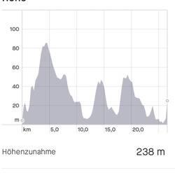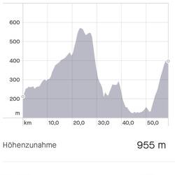 2 Anstiege gab es heute, 200 dann 400 m, beide harmlos.
