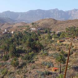 Das Barranco Guayadeque ist ein grünes Tal, im Süden der Insel eine Seltenheit. Das Tal ist eng und daher hat man viel Schatten, dazu sind die höchsten Berge der Insel genau oberhalb am Ende der Schlucht, Niederschlagswasser kommt dann hier herunter.