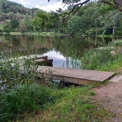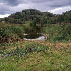 Der Gegenwind ist heute wieder spürbar heftig, zudem gibt es einige Anstiege, aber ich komme trotzdem an mein Ziel: ein kleiner RMK am Badesee.