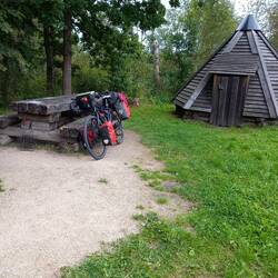 Ab Kallaste geht es ausschließlich über Land, die einzige Möglichkeit für die Mittagsrast ist ein Bushäuschen mitten in der Wallachei.
