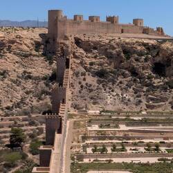 An unserem letzten Tag in Roquetas de Mar sind wir zur Burg von Almeria - der Alcazaba - gefahren. Während man sich in Granada lange vor dem Termin um die Eintrittskarten für die Alhambra prügelnEn savoir plus