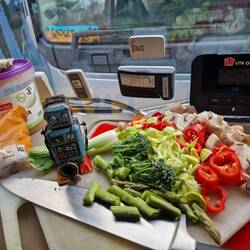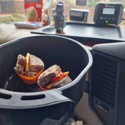 Start of a new week, more experimenting with the air fryer while we're plugged into 240v in Tommy's yard 🤗🤗🤗