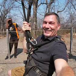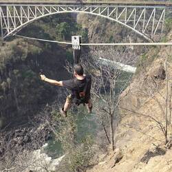 HochzeitsreiseShow tripAdd to bucket listRemove from bucket listShareDay 15Sunday, October 2, 2022 ☀️ 36 °C Altitude: 813 m ZambiaVictoria Falls Bridge-17.928708, 25.85749717°55’43” S 25°51’27” E1Auf zur Zippline und Brückenwalk October 2, 2022 in Zambia ⋅ ☀️ 36 °C Traveler🫶10/11/22Reply4 likes Show trip