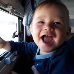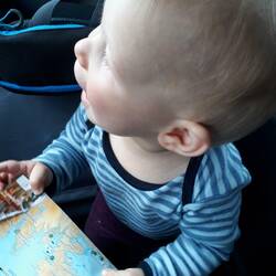Das Auffahren auf die Fähre klappte problemlos, allerdings weckte die Lautsprecherdurchsage, die ankündigte, dass die Zimmer erst in Kürze bezugsfertig wären, Theresa auf. Die Lautstärke, der diesmal durchwegs älteren und daher wohl etwas schwerhörigen anderen Passagiere, sowie mehrere weitere Durchsagen, verhinderten auch das rasche Wiedereinschlafen. Dementsprechend waren wir alle am Morgen müde und wenig erholt. Nach einem ausgiebigen Frühstück am Buffet - Eier aller Art, Pancakes, Obst, Gemüse, Brötchen, Wurst, Käse, alles, was das Herz begehrt - durfte Theresa wieder den Playground unsicher machen. Mittlerweile hat unser wiederholtes Ermahnen "Theresa umdrehen" und die Hilfestellung, um von einer Erhöhung herunter zu klettern, Früchte getragen. Stolz, wie Oskar, klettert Theresa überall selbstständig rauf - und jetzt auch wieder runter!
