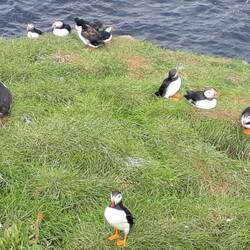 Zum Greifen nahe und daher unübersehbar waren hingegen für uns alle die Papageientaucher, welche so unbeeindruckt von uns waren, dass wir uns bis auf einen halben Meter nähern konnten.