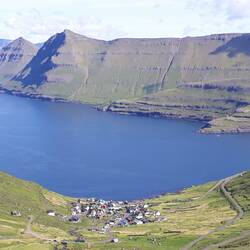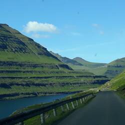 Abermals legen wir bei der Abfahrt, weder eine genau Route, noch ein Tagesziel fest. Hier auf den Färöer ist jede Straße, die man fährt ein landschaftliches Erlebnis, ganz gleich ob bei Sonnenschein oder mystischem Wolkenverhang. Uns treibt es nordwärts, und so gelangen wir an den nördlichsten Punkt, den man ohne Fähre erreichen kann. Straßen, die sich an steile Bergflanken schmiegen, und sich in schmalen, einspurigen Tunneln von einem Fjord zum nächsten schlängeln, lassen einen in eine fremde, abgelegene Welt eintauchen. Das Herumfahren an sich ist Freude genug für uns alle drei. Theresa schläft seelenruhig, während wir staunend aus dem Fenster unseres Autos sehen.