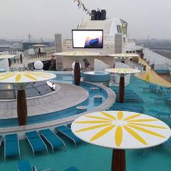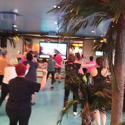 Heute war die See endlich wieder ruhiger. Deshalb fand auch Zumba statt. Da hab ich dann mit Jutta teilgenommen. War ganz schön anstrengend.🥵