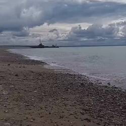 Der Strand besteht aus groben Steinen. Nur direkt am Wasser ist ein Standstreifen.
