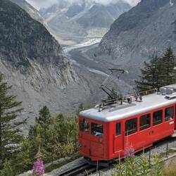 The scenery on the Mont Blanc Express as we travelled the long way around Lake Geneva, though the Swiss & French Alps was shocking. The mountains so tall you had to crane you neck to see their summits. Its odd the times you feel the slap of cultural difference - I felt it acutely while looking out the window of the tourist train. I'm used to sea and desert and bush. Australia is so glorious and weathered and flat-a land of sweeping plains. Having mountains looming over me, and their peaks so bare and sharp. Nothing rounded and softened by millennia. In the grand scheme of the continents and their shift, these montains are reasonably new. Imposing.