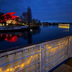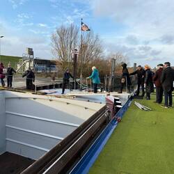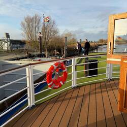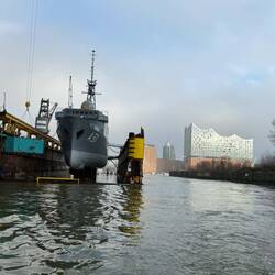 Nach der Fahrt auf der Elbe, fuhren wir an der Kulisse von Hamburg vorbei nach Drochtersen. Grosse Überraschung am einzigen Anleger - dieser war von einem Frachter belegt! Der Crew blieb nichtsRead more