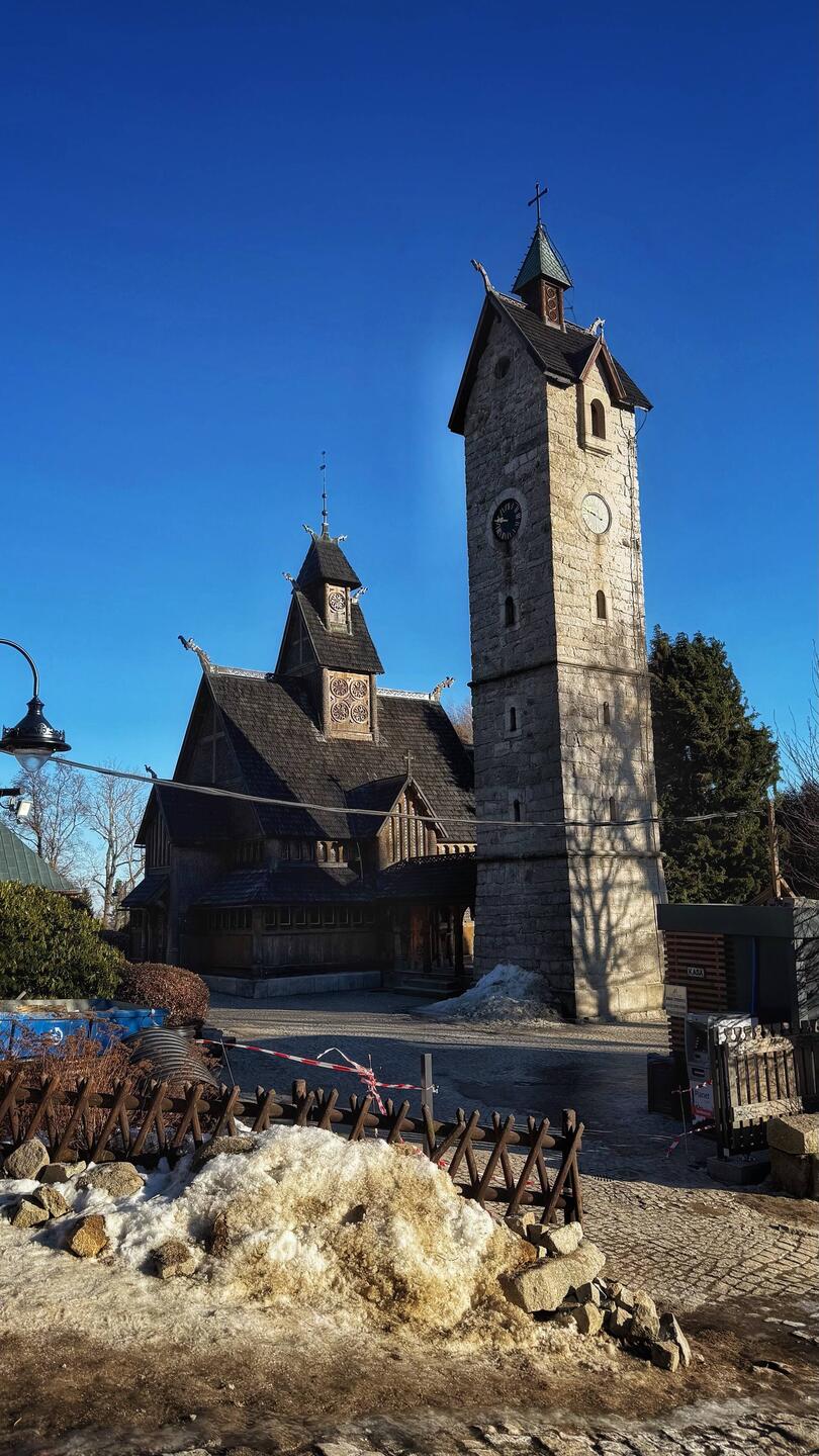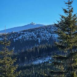 Z uwagi na silne wiatry kolejka na Kopę zamknięta więc wybraliśmy się niebieskim szlakiem z Świątyni Wang do schroniska Samotnia.