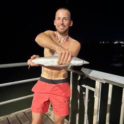 Kyle hat mich netterweise an meinem Spott rausgeworfen und ich konnte 2,5angeln. Ich hatte leider nur ein paar probende aber ein Kollege neben mir hat doch tatsächlich einen kleinen Hai gefangen. Ich wollte ihn anlanden holen was wirklich leichter gesagt als getan ist.