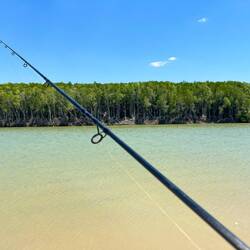 I had an incredibly exciting day today. After getting up, I ate my fruit salad as usual and had a coffee. Then Kyle made us scrambled eggs with bacon in wraps and we had another coffee. After that, Lina kicked me out at the Angel Spot. I then walked along the beach to the mangrove and fished in a river there. I had an insane bite from what was probably a crocodile. Unfortunately, after 10 minutes of fighting, the line broke, but I'm relatively happy about that because the crocodile was so strong that I didn't stand a chance. It just pulled off the line and that's all that happened. It was far too strong. After that, two sharks broke two of my lures and unfortunately we weren't able to catch any baramundi. after my little fishing trip, some of us had dinner and cooked baramundi for me or for us. It was really delicious. Now we're sitting on the terrace drinking a bit of whisky and having a good evening.Baca lagi