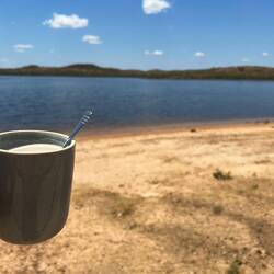 Da ich im Dorf am Wasser geschlafen habe, konnte ich das Zelt nicht aufstellen, um unbemerkt zu bleiben, hab ich quer auf meiner Rückbank geschlafen was überraschenderweise gar nicht soMeer informatie