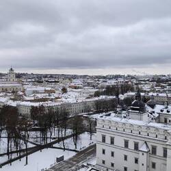 Heute haben wir die Altstadt von Vilnius erkundet. Wir waren unter anderem auf dem Gediminas-Hügel mit Aussicht über Vilnius, am Präsidentenpalast und am Rathaus.