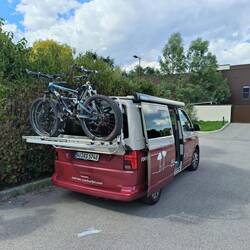 Wir sind bereits ein eingespieltes Team, Fahrräder abladen, Strom anschliessen, HochbettRead more