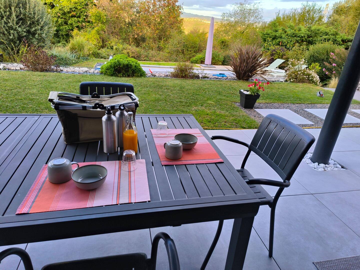 Bei unserer ersten Übernachtung bei einer Familie in einem Einfamilienhaus Quartier, mit Privatpool sind wir in Frankreich angekommen.