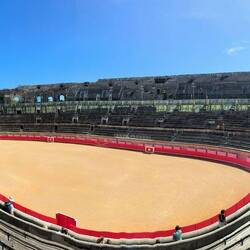 Frühstück bei Hr.Gautier in Millery/F. Start um 09.00 Richtung Montpellier, zwischen Stop in Nimes/Amphitheater. Übernachten direkt am Meer in Palavss-les-Flots, Camping 4-Stern....😉 Fahrt, ca.Læs mere