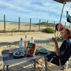 Heute sind wir bei den ersten die den Stellplatz verlassen (~09.00), lassen noch kurz Schmutzwasser ab und tanken frisches und dann geht's weiter der Atlantik-Küste entlang gegen Westen.