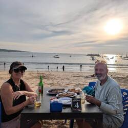 Отлично чувствуется находится одним, практически без посетителей, в громадном отеле,где практически никто перед тобой не мелькает, из нашего номера выход сразу к басейну, лежи и загорай себе весь день. Но нет, мы только отзавтракав здесь, решили даже не ехать а идти пока не так жарко пешим до пляжа. По дороге зашли в соседний отель просто сравнить что же предлагается здесь за 500 - 800 $ за ночь, и поняли что предела фонтазии просто нет. На пляже без особых изменений, и небо и океан всё раскрашено яркими красками. Познакомились с девушками из Питера на соседних кушетках, долго обшались. По их совету поехали на базар, где-то 30 мин дороги, купили 3 кг еды 😳 и это две рыбины, криветки и лобстер. За 3 $ всё это нам обработали и вкусно пожарили на гриле в соседнем ресторане прямо на пляже. Тут и закат наконец то красивый подоспел. Короче ох и разбалуемся мы здесь 🤯