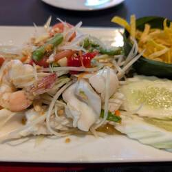 Отель Миша зарезервиривал еше дома, такой на Бали наверное стоил бы 20 $ ночь, здесь же 110$. Зато тайская кухня нам больше по вкусу. По цене наверное схожая с Балийскими ресторанными ценами . Сибас большая рыбина и Грин папая салат с морепродуктами как долго я о нем мечтала , всё безумно вкусно приготовленно, плюс пиво, всего 28 $ на двоих.