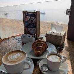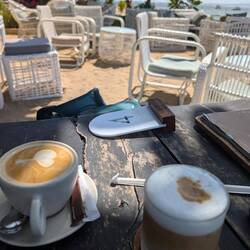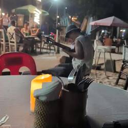 С закатом опять было упс сегодня, ну ничего еше не вечер, но зато почему-то был салют и прекрасная музыка, боже как он играет 🙏, в нашей уже полюбивпейся кофешке на пляже. Наслаждаемся им второй вечер.Les mer