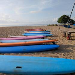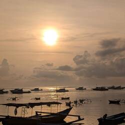 После обеда мы опять на такси возврашяемся к океану, на юго - западную часть острова Бали. Время любоваться закатами. Широченные, длинюшие пляжи с барами вдоль всего побережья. Вода тёплая но с приличными волнами, отличное место для серфингистов. Наверное задержимся здесь на пару ночей. Поместились в Ibis styles, рядом с пляжем.Les mer