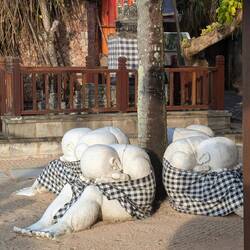 Еше не вечер а 20 тыс шагов уже прошагали. На однодневную ехскурсию на другой остров решили не ехать, нам и тут не плохо, даже решили задержаться здесь еше на пару дней, хорошо что заранее ничего не буковали. Туристический сезон наверное еше не в полном разгаре именно здесь, в основном много Европейцев да и Австралия тут не далеко. Местные ну очень доброжелательные, это чувствуется буквально сразу, даже собаки здесь добрые. День они начинают с подношений своим богам, на листьях бамбука они укладывают цветы, еду, напитки и так три раза в день .И это можно видеть буквально везде. Чувствуется что живут они в гармонии с собой. Интересных фотографов сегодня встретили. Они фотографируют бегущий по променаду людей, потом продают эти фотографии, не знаю кому но кому-то наверное это нужно, говорят успешный бизнэс😅. Всё, завтра побегу, пускай фотографируют 😂