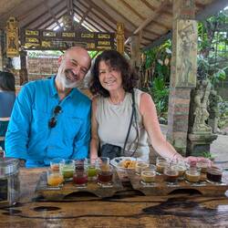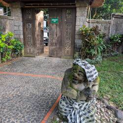 В 3 часа дня на такси мы отправляемся в Убуд, это наше второе место на острове Бали с которым нам хотелось бы познакомится. От Санура всего час езды, без трафика и стоит это всего 10 долларов. Здесь мы планируем провести 3 - 4 дня. По дороге водитель предложил нам остановиться на одной из кофейных плантаций, идя нам понравилась. Нас как будто бы здесь давно поджидали, всё оказалось слажено и организовано. Появился сразу гид, она провела нас по чудо саду, показала и рассказала как растёт кофе, разные сорта, какао, ваниль и куча всего остального редко встречаюшегося, познакомила нас со зверюшкой называется лувак, из семейства кошачих, которого кормят кофе, в животе у него оно перерабатывается, потом он какает 😳😳😳,.... И эти какашки собирают, моют, сушат, облушивают, жарят, мелят и продают как золото,100 $ кг. Потом была дегустация, мы не прониклись 🤯😂, но жаренные бананы и другие сорта кофе и чаев с всевозможными сухими добавками и сладостями нам ну очень понравились, попробую делать дома. Они высушивают и преврашают в порошок например кожуру авакадо, лимона, цветов мангустина, хибискуса, жинжира, лимонной травы, турмирика и тд и подмешивают их к обычным чаям и кофеям. И еше сахарку то вообще пей и наслаждайся, раслабляйся, оздоровляйся Короче было вкусно и познавательно, узнали почти все их кулинарные секреты. Оказывается это только для туристов они боятся делать острую кухню, а сами они очень любят применять много разных прянностей и специй.