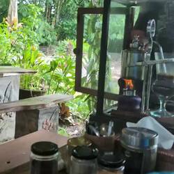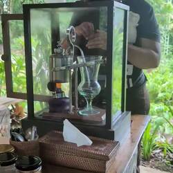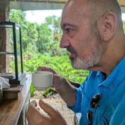 Это всего 10 мин на шатле от нас. Из всех тропических фруктов очень понравился мангустин. Очень вовремя зашли в очень продвинутую, софистикатед кафейню, Миша мой продвинутый кафеман сказал что таких он еше нигде не видел, всё оказалось просто супер. И первый раз в этом путешествии мы увидели настоящий тропический ливень, так что мы оказались в правильном месте в правильный час.