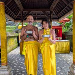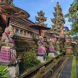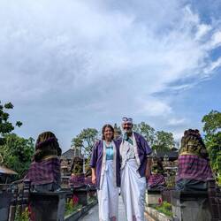А потом выглянуло солнце и мы пошли бродить по Убуду. Посетили два основных в этом месте храма, увидели цветушие лотосы, но для этого мы должны были облачится в феолетовые традициозные костюмы.В основные, важные храмы нужно одевать специальные одежды. А менструируюшим женшинам в этот момент вход на это период запрещён 😩