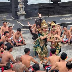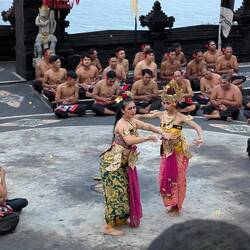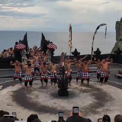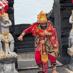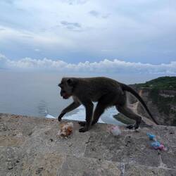 Ничего не предвещало неприятностей. Сегодня в нашей программе посещение одного из знаменитых храмов на Бали. Находится он на высокой скале у моря и достраивался еше в 11 и 16 веках. Мы пришли суда увидеть это чудо и посмотреть шоу балинийских танцев на закате солнца. Храм ещё известен своими макаками которые воруют всё что могут, включая телефоны, очки, сланцы для обмена на еду. Так вот, не успела я и глазом моргнуть как они стащили мои любимые новенькие байфокал солнечные очки с японской резиночкой😲😩😭😳 и менять к сожалению было уже нечего, резиночка исчезла а от очков остались рожки да ножки, погрызли всё прилично вредные макаки. 🤯😞😮Теперь я точно знаю что с макаками и слонами я неееее дружу.