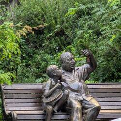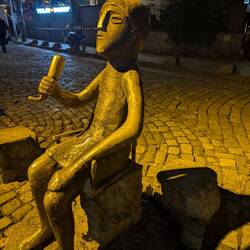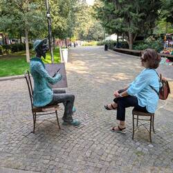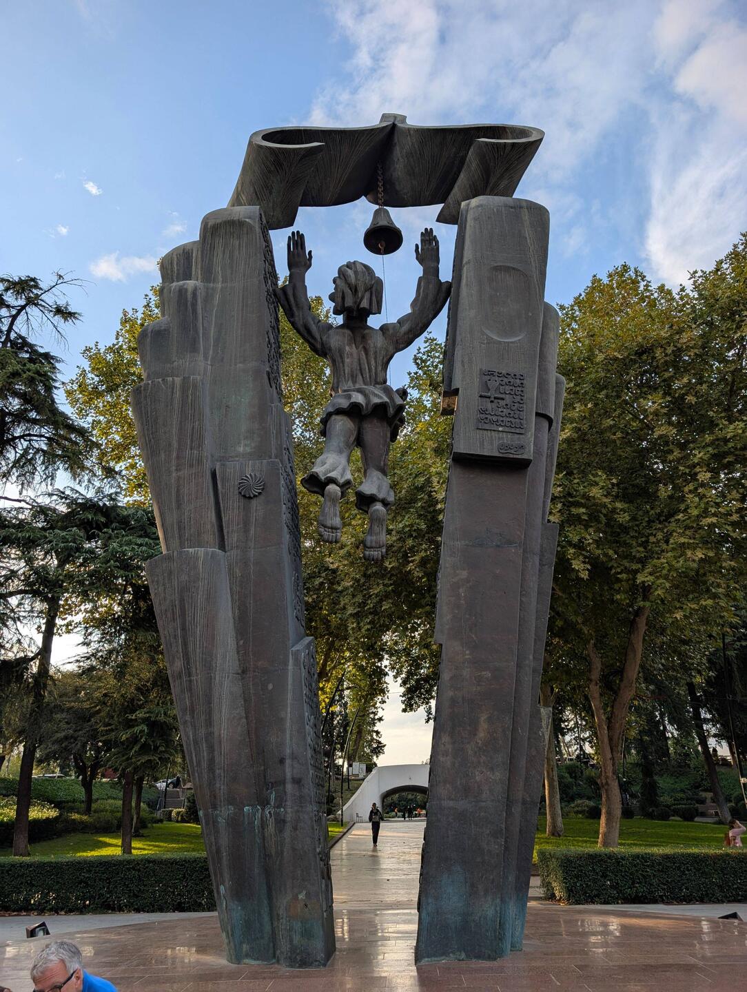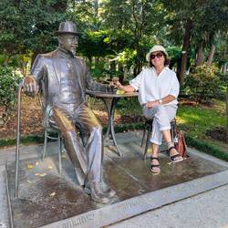 Но нас опять поманил аудиогид и новые истории. Мы гуляли по парку Грузинского языка, по парку художников, где я даже попазировала одному, прошли блошиный рынок, там то я и нашла себе очередную беременную статуэтку, потом еше долго гуляли, на 7 метровом велосипеде кататься не решились, ногами надежней, зашли в роскошную сохранившуюся до сегодняшних дней парадную старинного отеля Лондон,а как замечательно играла пианистка в кафешке рядом с парком скульптур(недалеко от национальной галереи), полюбовались со всех сторон зданием юстиции в форме опят и пошагали дальше но об этом отдельный рассказ.