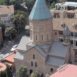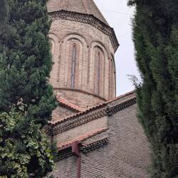 Оказывается около нас и самое вкусное кофе и шоти пури только только что выпекавшее в тандыре, а с сулугуни, мацони и помидором это просто песня. Но начали мы свой день в Большой Синагоге Тбилиси, она оказалась просто в двух шагах от нас. Потом