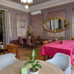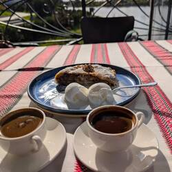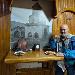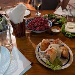 Сегодняшний ланч запомнится нам на долго. Ресторан Beletage - хозяйка его Нина живёт в доме своих предков и только 6 лет назад открыла домашний ресторан. Баклажаны с ореховой начинкой и утцкосунэли, купаты и грибы в молочном соусе все было на высоте но сырники Миша оценил как самые лучшие что он когда то пробовал. Пришлось Нине учить меня и выдавать все свои секреты 😊, обстановка, еда и её презентация а еше большое семейство чудных кошек с маленькими котятами все было на столько атмосферно что уходить совсем не хотелось, мы долго общались и кажется уже подружились 😊