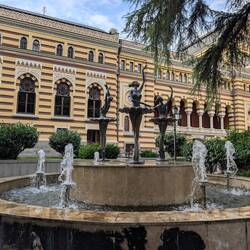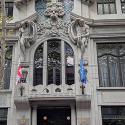 наш аудиогид долго гулял с нами по центру города рассказывая и посвящая нас в историю Тбилиси. Мы прошли по проспекту Руставели, это главный фасад города, всего полтора км, он соединяет плошадь Свободы и плошадь Революции Роз, и в этом промежутке соединилось большое количество интересных достопримечательностей, театр Оперы и балеты в мавританском стиле, Воронцовский дворец, здание парламента Грузии - место всех демонстраций, национальный музей Грузии, церковь Кашвети, театр им. Шота Руставели, Дом Габашвили, синий дом, и многое другое.