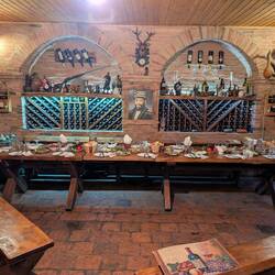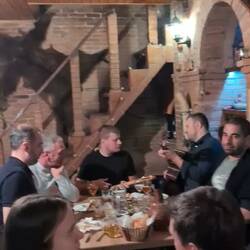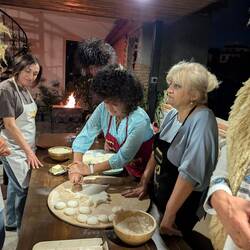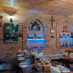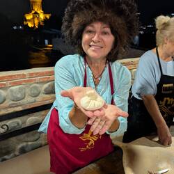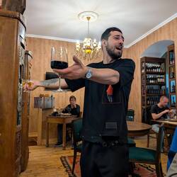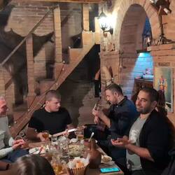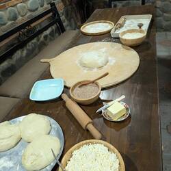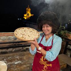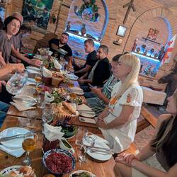Вещь серьёзная. По рекомендации Лены мы заранее зарезервировали это не шуточное мероприятие и удовольствие было через край. Хозяин Илья молодой парень ведёт этот бизнес уже 9 лет. Сказал что приснился ему сон,где Бог ему наказал собирать гостей, поить, кормить, развлекать да еше учить их лепить хинкали, хачапури эмеритинские, шашлыки и так каждый день. Мальчик он был смышленный и уже в 13 лет начал с друзьями копать подвал в доме, не прошло и 15 лет и все готово, гуляй, не хочу. Здоровья ему выдержать это, работа каждый день без выходных 😊, не забалуеш.