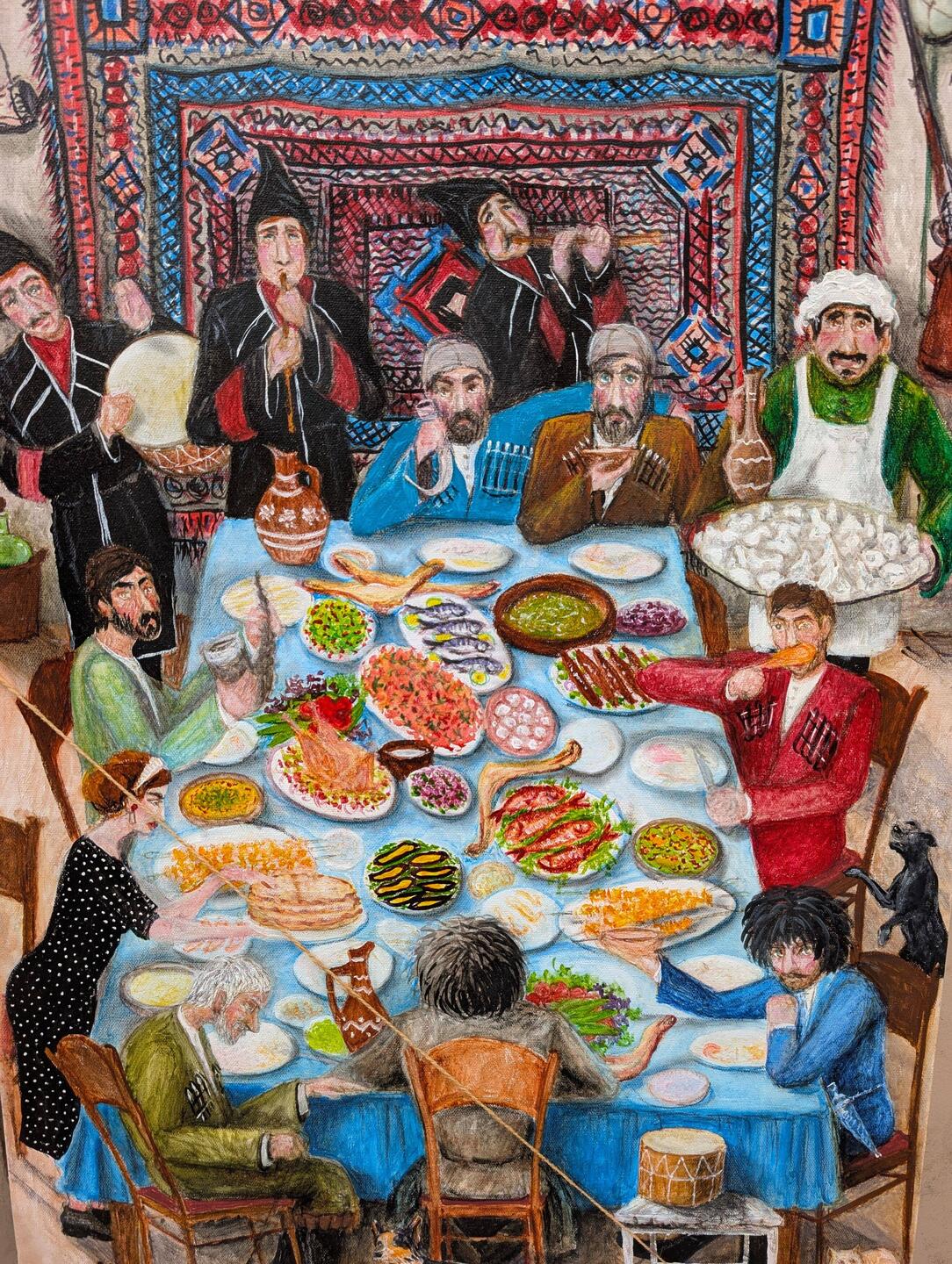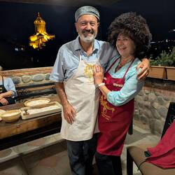 Илья он же тамада, сидел рядом, тосты это отдельная программа, их много и после каждого просят до дна,винои еда в изобилии как из рога, и конечно же потрясаюшие музыканты с грузинской гитарой пели и развлекали нас по полной программе. Все мы перезнакомились, вечер удался.На мастер класс как и обешали все показали, научили,потом всю нашу кулинарию надо было съесть под новые тосты и песни. Короче домой нас привезли далеко заполночь. Ой что же будет дальше. Ну уж очень гостеприимная эта Грузия 😊