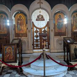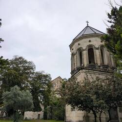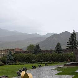 3-Монастырь Бодбе. Мы посетили женский монастырь, где покоится святая Нино и хранится чудотворная икона матери Христа. Погуляли в живописном дворе с видами на Алазанскую долину. Нам опять повезло с погодой, тумана не было и можно было видеть Кавказские горы.
