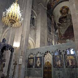 Вчерашнее погружение в среду дало себя знать, спали долго, завтракали дома . Всю ночь шёл дождь и прогноз на день голубого неба не обешал тоже. Поэтому решили поехать на экскурсию в древнюю столицу Грузии-Мцхету. Здесь проходил шёлковый путь соединяюший когда-то Евролу и Азию. Нико был нашим гидом, он же режисер в театре, интересно обо всем рассказывал. Мы побывали в величественном соборе