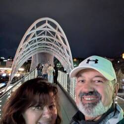 Дождик в Тбилиси вечером не планировался, но нас не запугать и мы гуляем по ночному Тбилиси, музыканты, улицы заполненные ресторанами, мосты и даже водопад, боже как же здесь нам хорошо....