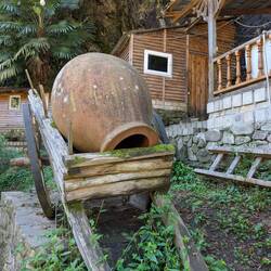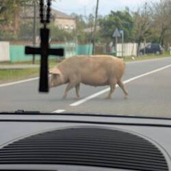 Дорога была интересная и разговоры с Мамукой тоже. В Грузии похоже очень виртуозные водители, они могут мастерски объезжать медленно шагающих по дороге коров, собак или свиней. 🙄 Мамука много рассказывал нам о Грузии, о своей семье , бизнесе, о Грузинских традициях, церемониях, и с большой любовью он вспоминал свою маму. По возвращению в Кутаиси Мамука завёз нас в свой второй дом и показал нам его винный погреб, который во время Ковида выкопал сам. Вино у него получается ну очень вкусное.