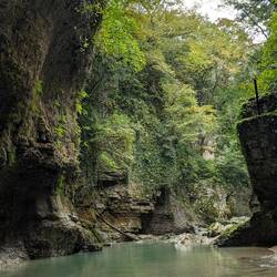 Следующим номером нашей интереснейшей программы куда привёз нас Мамука был Мартвильский Каньон. Он находится на реке Абаши, близ города Мартвили, в регионе Самегрело. Каньон