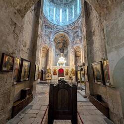 Мамука угостил нас кофе и повёз дальше. Чтобы увидеть монастырь 7 века мы взобрались на высокий холм. Это