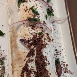 чакопули( это стю с ткемали, тархун, зелень, чеснок и белое вино)