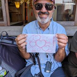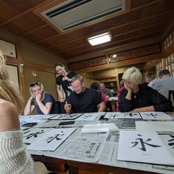 После вкусного обеда, Даша провела нам урок чистописания 😉. Ох нелёгкая это работа японская каллиграфия. Миша теперь может написать любовь а я счастье ❤️🤗, над вечностью еше надо поработать.