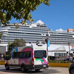 Всего 11 часов с пересадкой в Чарлзстонe (Северная Каролина) и мы на в столице Пуэрто Рико в Сан Хуане . Забыв что пропустили ночь, мы включили свои внутренние батарейки и сразу же отправились осматривать старый Сан Хуан. Шокирует сразу всё, только на прошлой неделе мы были в красивой морозной зиме (Вашингтон ДС) а сейчас перед нами знойное лето, плюс 28 С. И опять столица 🙄 🙄, везёт же нам... С первого взгляда город нам напомнил Картагену в Колумбии. Разноцветные, ярко красочные здания в колониальном стиле, мостовые из брусчатки и тёплые гостеприимные местные жители. И конечно же море туристов. Сегодня сюда причалили аж 4 круизных корабля. Похоже что места здесь для всех достаточно. Приятно видеть улыбки на лицах и фонтан позитива вокруг. Всё это здорово заряжает.И конечно же фотография Мишй с сегодняшней мировой супер звездой Bad Bunnny- это точно фото дня 😊 А все самое интересное можно увидеть в этом коротком видио 👍